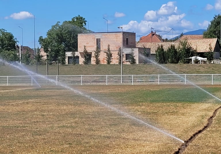 Installation soignée d'arrosage automatique, avec pompage et automatismes adaptés à chaque terrain.